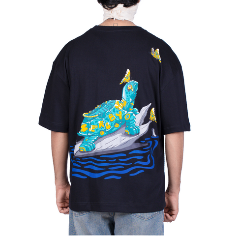 The Benefit tee is based on the symbiotic relationship between Butterflies & turtles where butterflies drink turtle tears as a source of sodium and minerals. In turn, the turtles get their eyes cleaned.